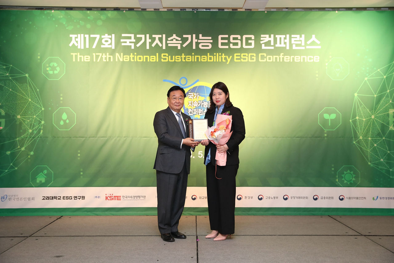 올해로 17회째를 맞는 ‘국가지속가능 ESG 컨퍼런스’는 체계적인 ESG 경영 활동을 통해 기업 경쟁력을 제고하여 국가와 사회의 동반 성장을 주도하는 국내 우수 기업 및 기관을 선정하는 시상식이다. 한국언론인협회와 고려대학교 ESG 연구센터가 주최하고 기획재정부, 외교부, 보건복지부, 환경부, 고용노동부, 공정거래위원회, 금융위원회, 식품의약품안전처, 동반성장위원회의 후원 하에 진행됐다.