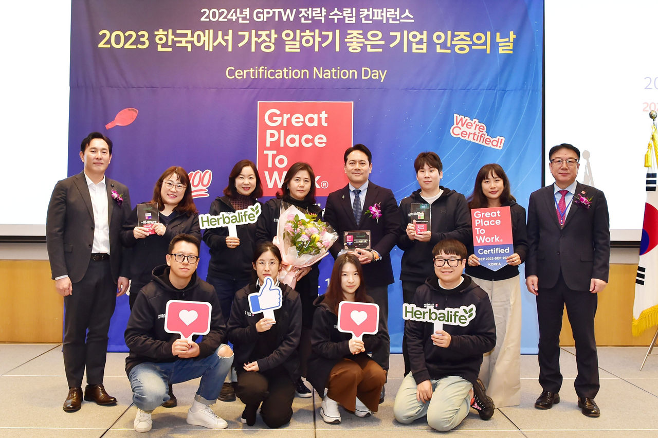 글로벌 뉴트리션 전문기업 한국허벌라이프가 지난해에 이어 2년 연속 글로벌 기업문화 조사기관 Great Place to Work(이하 GPTW) 주관 ‘대한민국 일하기 좋은 일터’ 인증을 획득했다.