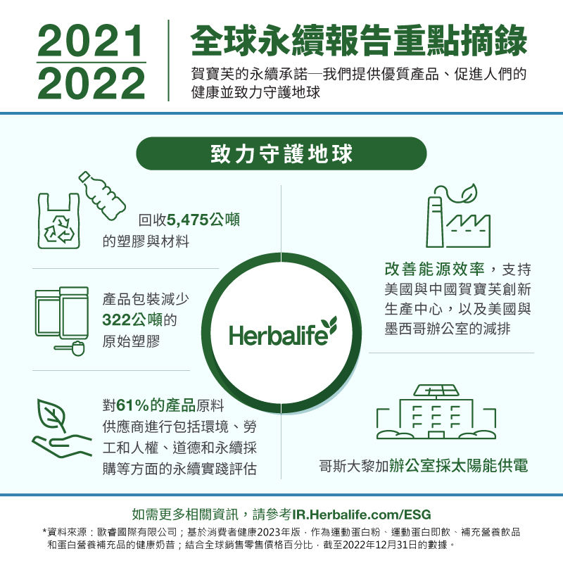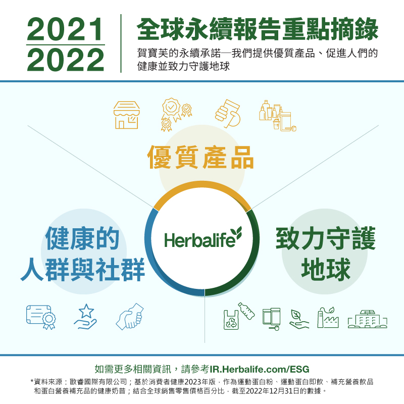 全球健康與保健公司美商賀寶芙發布最新的全球永續報告:《活出你最精彩的人生》。該報告涵蓋賀寶芙在2021年至2022年期間的成果,並公開在三個重點領域的永續業務實踐和承諾,包括優質產品、促進人們的健康,以及致力守護地球。