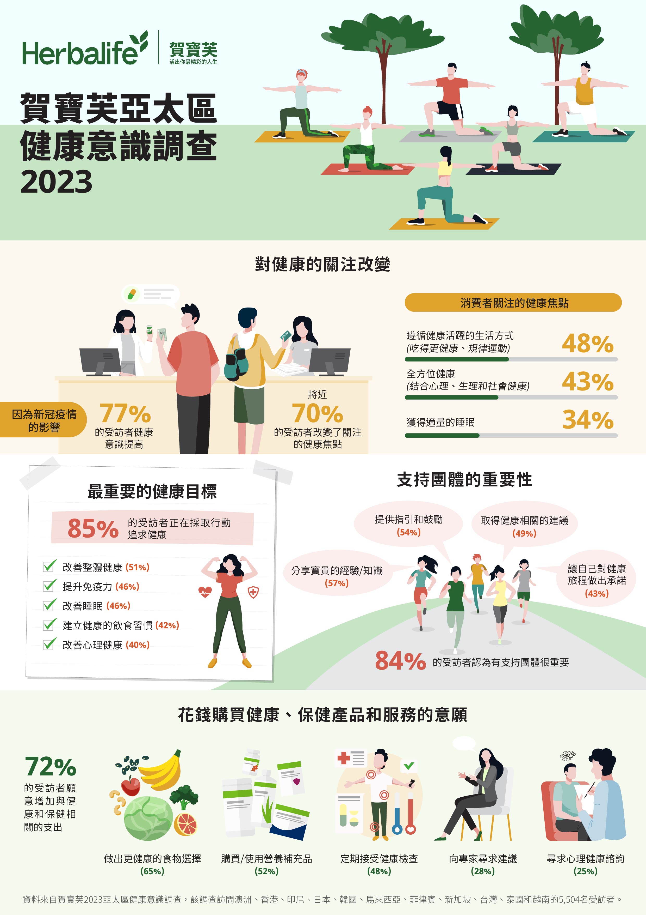 美商賀寶芙調查發現亞太地區消費者健康意識提高 改善整體健康、更好的睡眠、增強免疫力是他們的三大健康目標